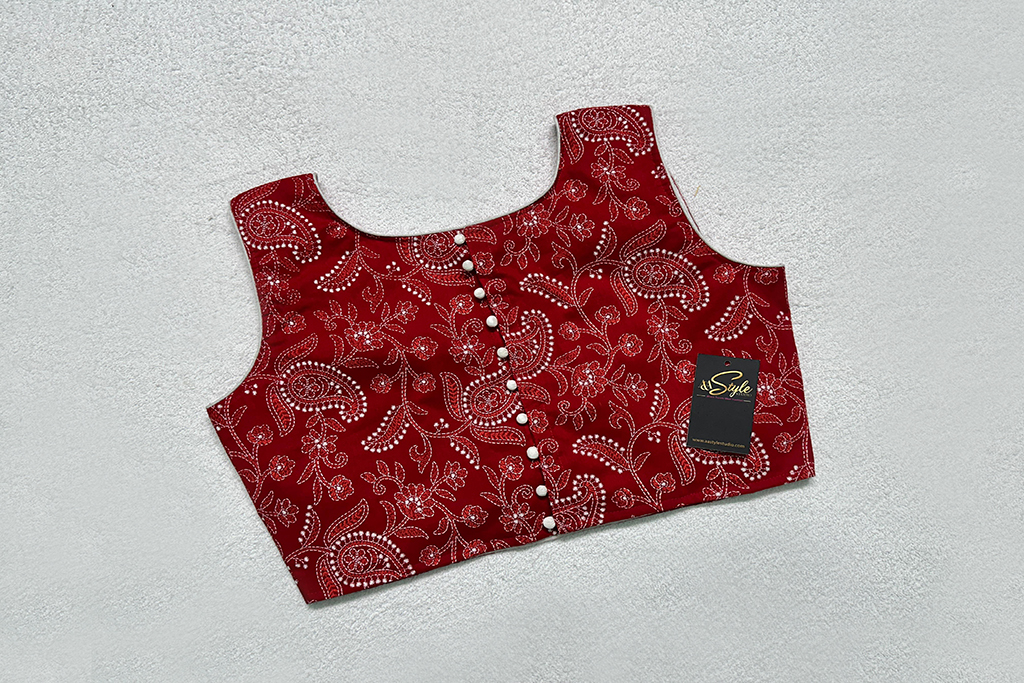 This is a Red & White Color Cotton Printed Blouse. This Blouse is Sweetheart Neckline in Frontside & Boat Neckline in Backside. This is a Princess Cut, Non-Padded, Sleeveless Blouse with Back Open. You can team it up with any contrast colored Printed or Traditional Saree.